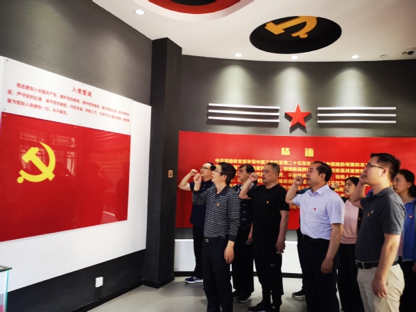 參觀結束后,在第二巡察組組長、臨時黨支部書記薛慶文同志的帶領下,全體黨員面向黨旗莊嚴宣誓,重溫入黨誓詞,牢記共產黨員的“初心和使命”。