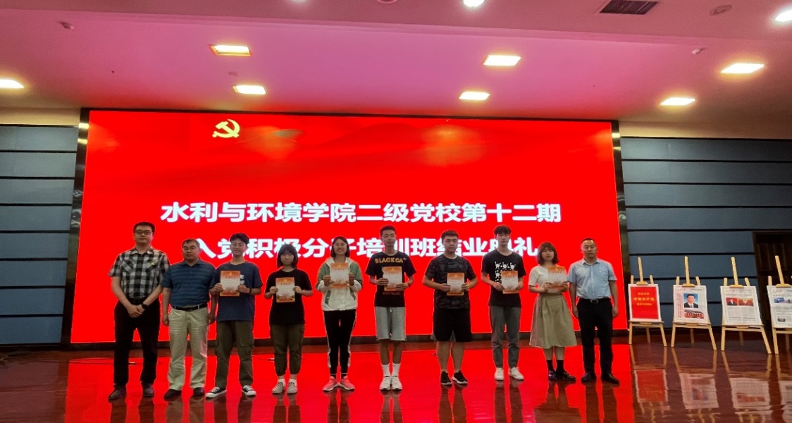 專題黨課結束后,召開了水環學院第十二期入黨積極分子培訓班結業典禮。培訓班班主任王雪純就培訓工作做總結匯報,王妍宣讀本期黨校培訓優秀學員的表彰名單,鄧紅章、段磊為優秀學員頒發證書。