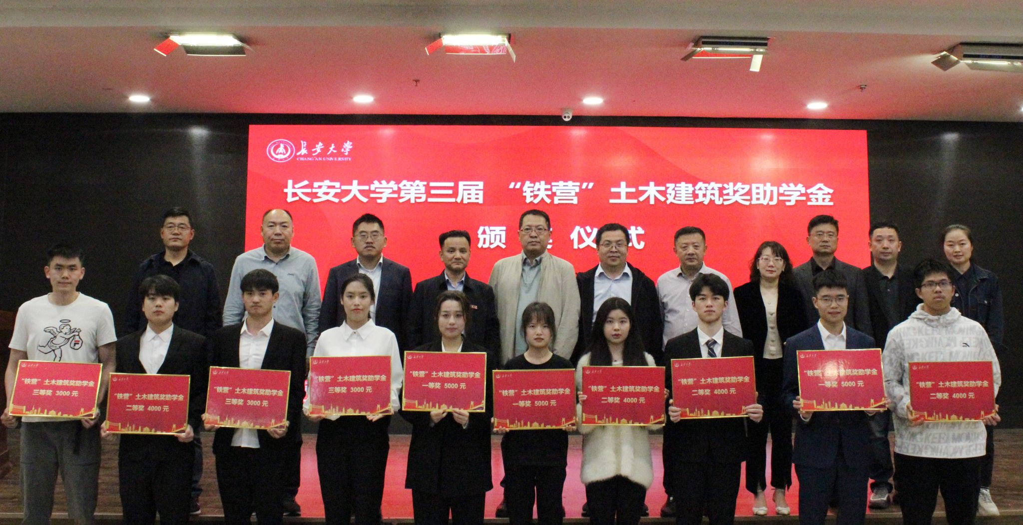 4月1日下午,第三屆長安大學“鐵營”土木建筑獎助學金頒獎儀式在北校區長安文化藝術中心三樓多功能廳舉行。長安大學校友齊鐵營,我校社會合作處處長、教育基金會理事長楊紅斌、思創中心辦公室主任郭云珠、學生資助中心副主任郭海麗,建筑工程學院黨委書記吳濤、院長邢國華,建筑學院正處級組織員申偉、院黨委副書記劉鵬、院黨委副書記孟慶鵬、副院長余侃華出席頒獎儀式。全體獲獎學生、兩院輔導員和學生代表200余人參加頒獎儀式,儀式由建筑學院院長侯全華主持。