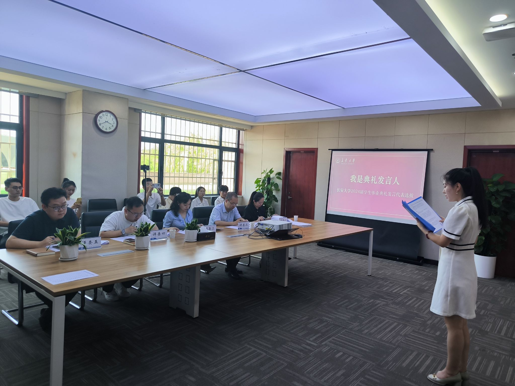 6月11日下午,學(xué)校在北校區(qū)北辰樓舉辦“我是典禮發(fā)言人”2024屆學(xué)生畢業(yè)典禮發(fā)言代表現(xiàn)場選拔活動。學(xué)工部、武裝部、招就處有關(guān)人員及學(xué)院輔導(dǎo)員代表等作為評審團(tuán)成員參加活動。