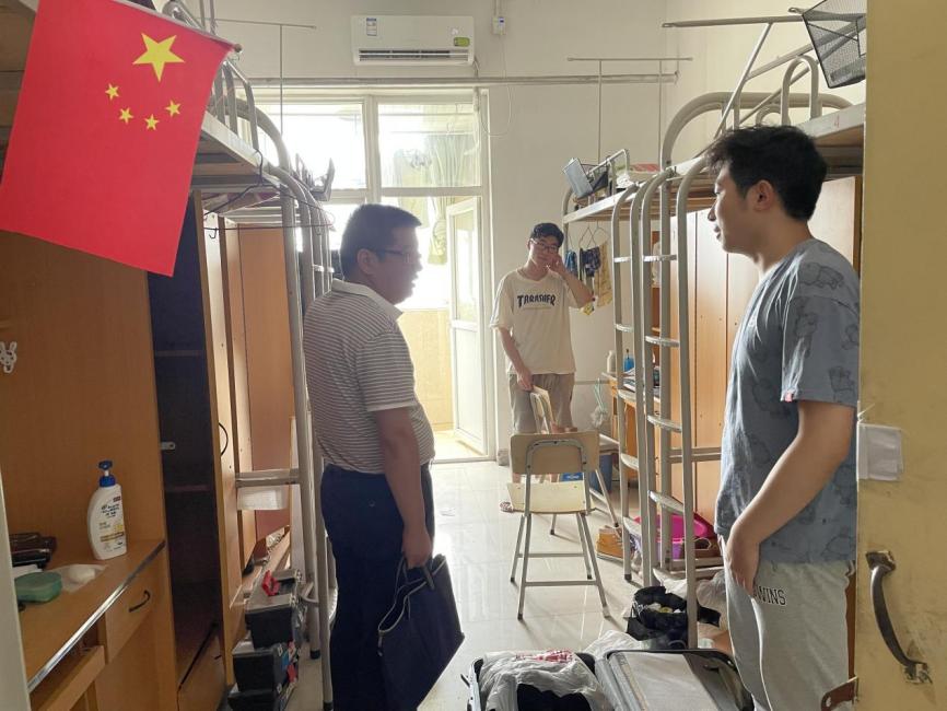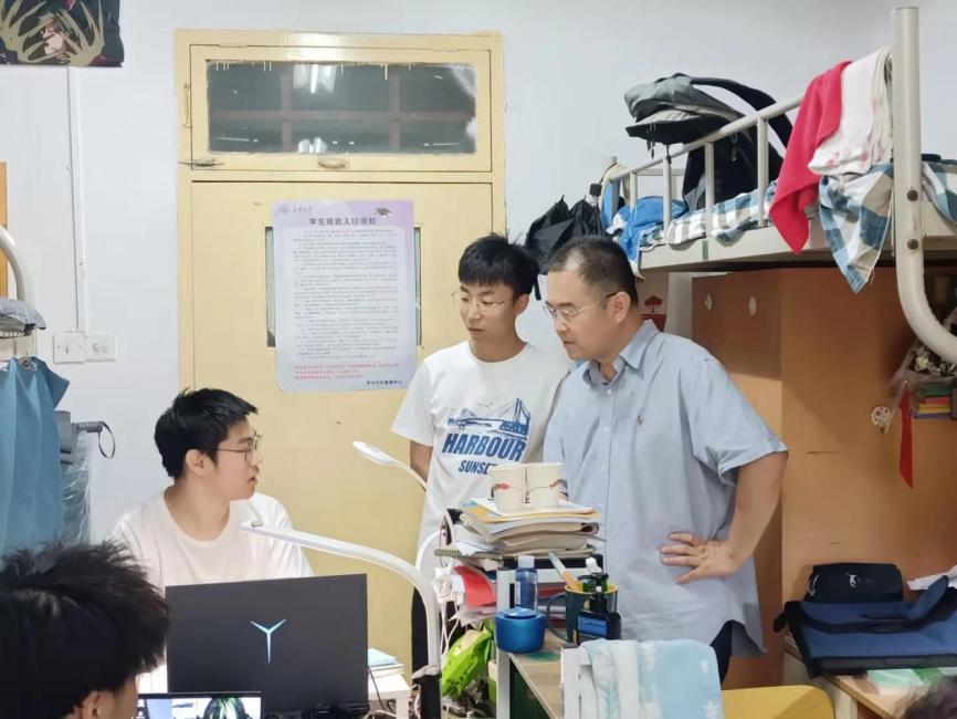 學院副院長茹鋒、段晨東、龔賢武,先后多次走訪學生宿舍,搭建線上溝通平臺,尤其是與黨員宿舍、學困生宿舍等的學生進行了深入交流,了解了他們在宿舍的學習和生活狀況,并鼓勵同學們擺正學習心態,加強專業知識學習,提升專業技能,為以后的高質量就業打好基礎。