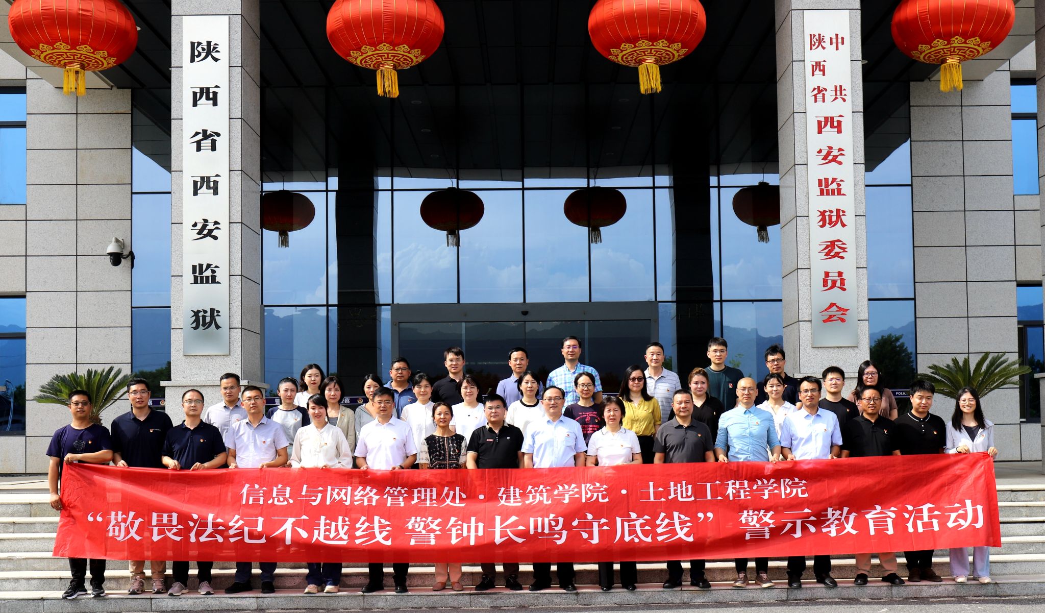 為扎實推進黨紀學習教育,進一步強化廣大黨員干部的黨性修養和法紀意識,使黨員干部受警醒、明底線、知敬畏,6月12日下午,信息與網絡管理處、建筑學院、土地工程學院組織處科級領導干部、系室主任、黨支部書記、教職工代表赴陜西省西安監獄開展“敬畏法紀不越線 警鐘長鳴守底線”警示教育活動。