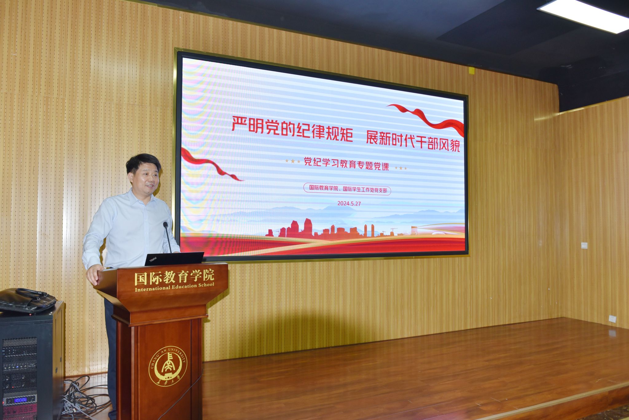 5月27日,國際教育學院黨支部與結對共建黨支部--經濟與管理學院經濟系黨支部在南校區國際學院多功能廳組織開展黨紀學習教育專題黨課。會議由國際教育學院黨支部書記張偉主持,兩個支部黨員參會。