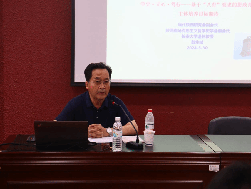 本次活動邀請長安大學馬克思主義學院退休教授戴生岐作題為《學史·立心·篤行——基于“八有”要求的思政育人主體培養目標期待》專題報告。馬克思主義學院黨委副書記馮迪,學院春季二級黨校培訓班全體學員、第十六期青馬班全體學員參加。院團委書記楊帆主持報告會。
