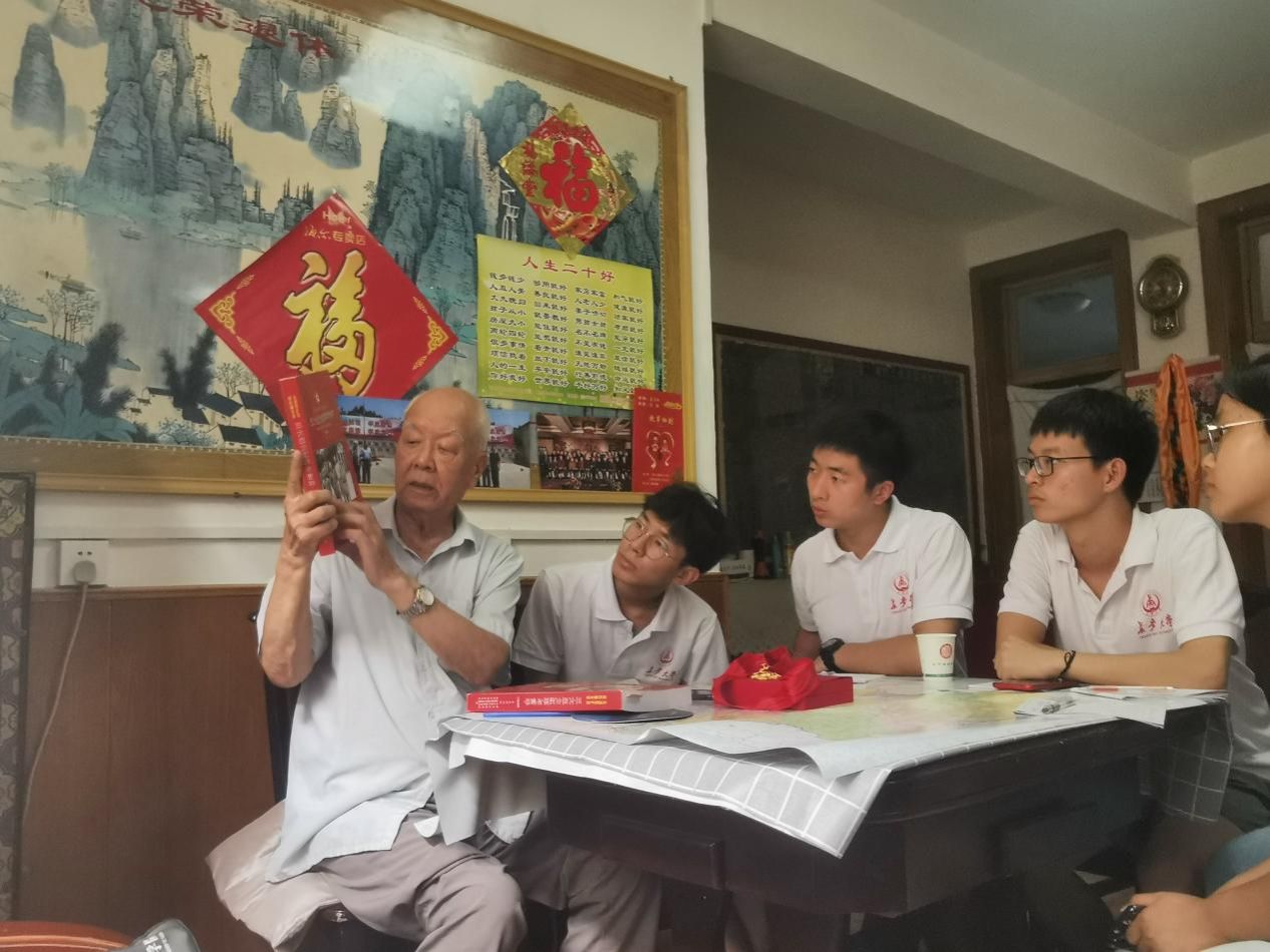 當日下午,實踐隊前往退休教師惠志剛的家中,聆聽了一堂別開生面的黨課。惠志剛老師于1963年入黨,黨齡已長達58年。短短一個多小時的黨史課,讓實踐隊員們受益匪淺。以惠志剛為代表的老黨員對青年人的殷切期望,使得隊員們更加明確了自己作為社會主義接班人肩上的使命擔當,提升了奮力前進的動力。