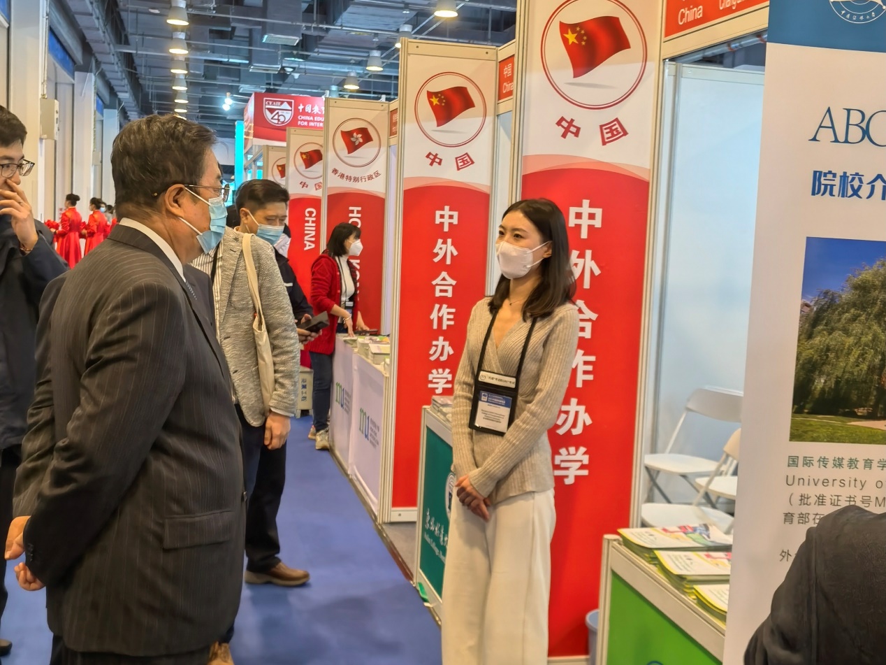 10月23日上午,展會正式開幕。劉利民、王永利一行蒞臨學院展位指導,交流詢問學院中外合作辦學情況,聽取了關于學院辦學特色、人才培養、國際交流等方面的介紹,對學院取得的辦學成果給予了充分肯定。
