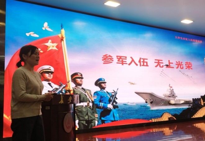 宣親身經歷,軍轉導員現身說法。水環學院軍轉輔導員于舵圍繞“國無固防豈能立,民無兵護心難安”主題緊扣上下半年應征入伍節點,大力宣傳征兵工作是鞏固國防和保家衛國的基礎、源頭和造血工程,以自身軍旅實例,生動講述服役故事、敘述個人成長,鼓舞學子參軍報國熱情。