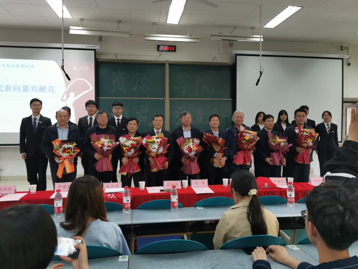 地質礦產普查、地球物理勘探專業1978級7位、1987級和1993級共9位嘉賓校友參加了報告會。他們是中國地質科學院地質力學研究所副所長馬寅生研究員,西安交通大學經濟與金融學院原副院長馮濤教授,西安石油大學袁炳強教授,甘肅省地調院副院長、地學大數據勘查技術創新中心首席專家羅建民教授級高工,陜西省地質調查院總工辦原副主任王北穎教授級高工,中化地質礦山總局山東地質勘查院原院長王少華研究員,陜西地礦物化探隊有限公司副總經理申安斌高工,陜西省勞動模范、延長油田股份有限公司杏子川采油廠廠長劉雪峰教授級高工,上海致達科技集團有限公司黨委書記、總裁助理杜洪斌高級經濟師,長安大學教育基金會秘書長、計財處處長杜文,資源學院黨委書記黃喜峰、院長李榮西、副院長程宏飛,張伯聲基金管委會副理事長兼秘書長、陜西省教學名師楊興科教授等出席報告會。