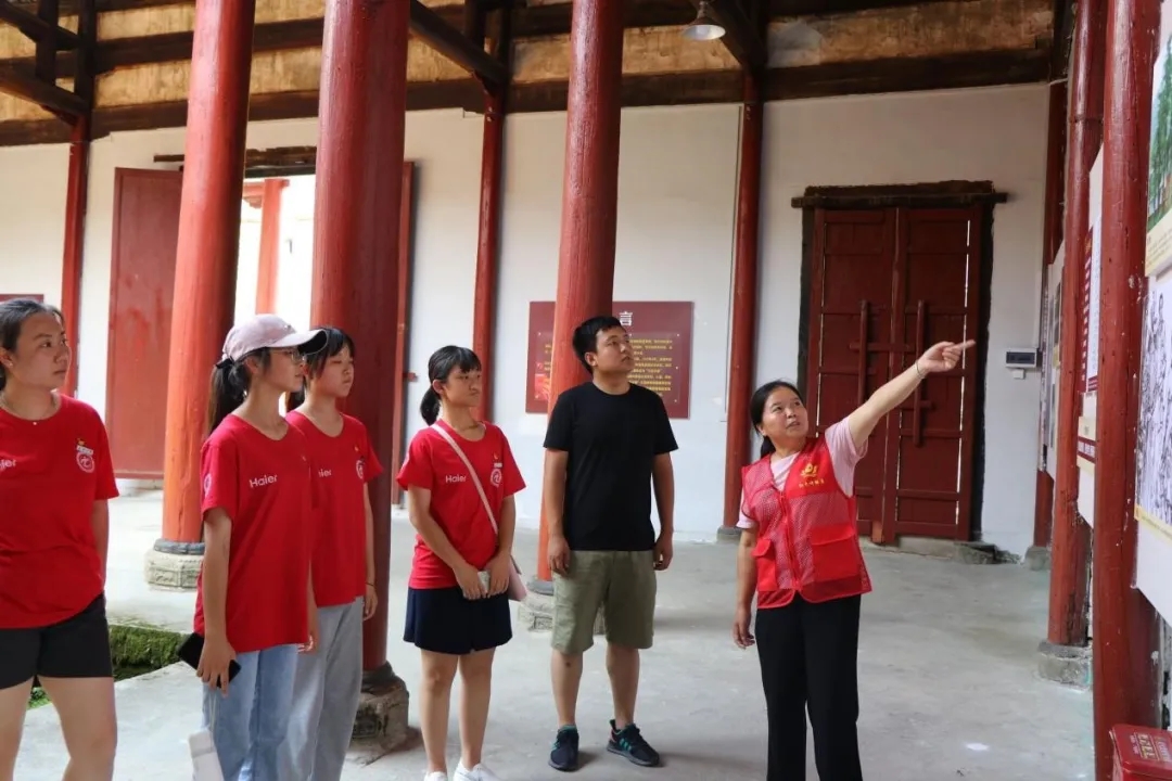 在高灘村,實踐隊成員尋找到了革命后代、紅色鄉村代言人——謝香蓮。謝香蓮帶領實踐隊成員參觀王佐烈士紀念館和村莊內的祠堂學習紅色文化,宣傳鄉村文化,促進鄉村振興。謝香蓮帶領實踐隊參觀過程中向隊員講述王佐烈士在建立井岡山斗爭時期組織建立基層黨支部——王佐支部的突出貢獻。