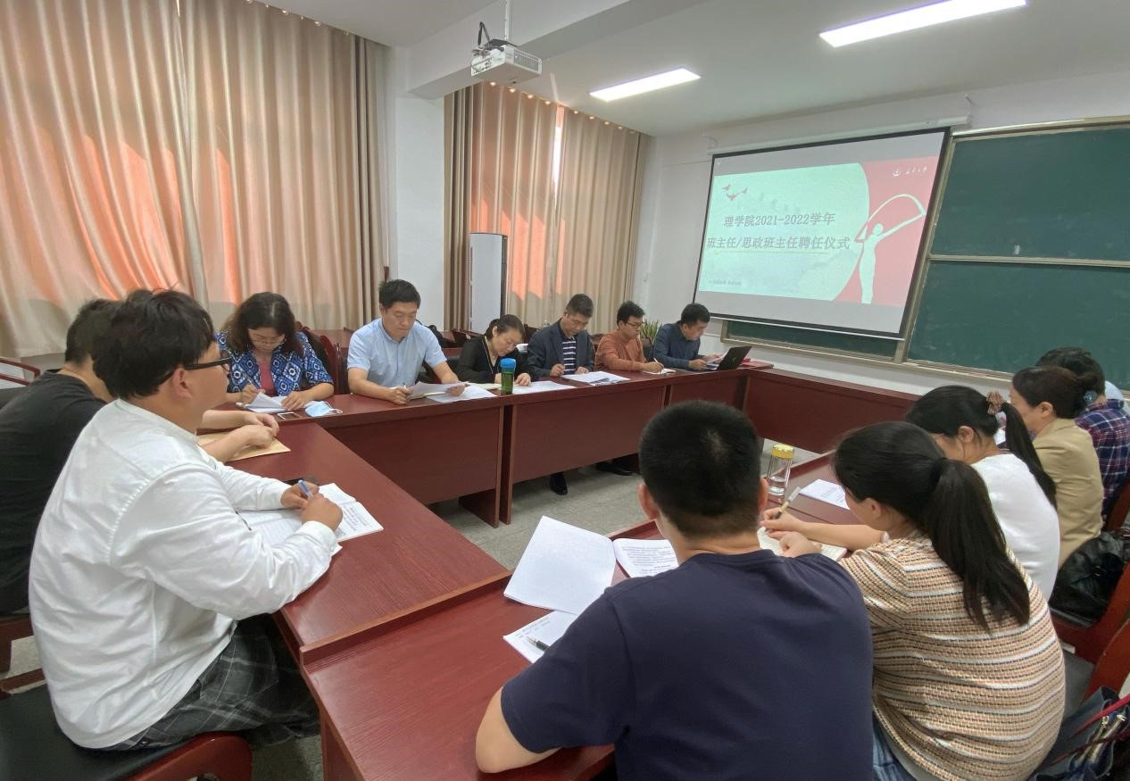 為進(jìn)一步推進(jìn)三全育人工作,促進(jìn)班主任工作科學(xué)化、規(guī)范化、制度化,9月30日,理學(xué)院舉行了2021-2022學(xué)年班主任/思政班主任聘任儀式。學(xué)院黨委書記閆永剛、副書記屈穎、全體班主任、思政班主任參加了本次聘任儀式。儀式由團(tuán)委書記劉延海主持。