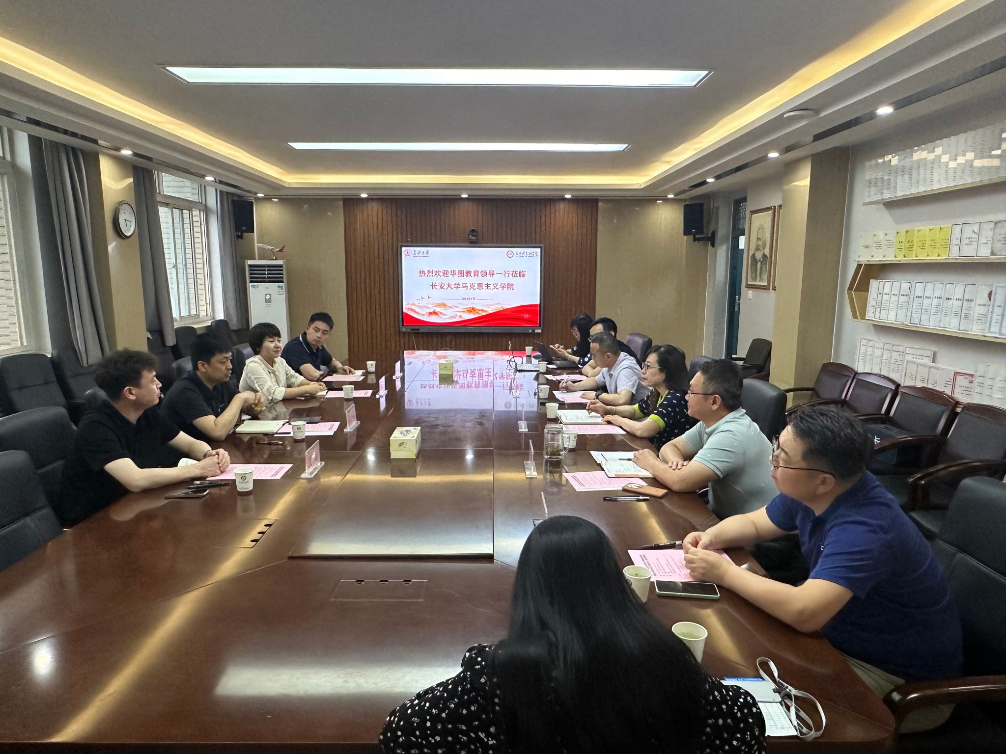 5月29日下午,華圖教育陜西分校副校長王小棟一行赴馬克思主義學院開展畢業實習、就業座談會,學院黨委書記李小芹,校招生就業處副處長趙磊,學院黨委副書記馮迪、思政系主任楊超、思政系黨支部書記殷峰、思政系副主任趙曉妮和畢業生代表陳星悅出席座談會。會前,院長陳懷平會見了華圖教育陜西分校王小棟一行。會議由馮迪主持。