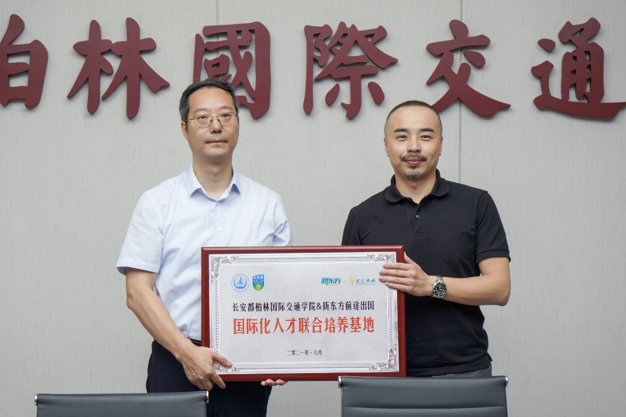 6月9日,長安都柏林國際交通學院-新東方前途出國國際化人才聯合培養協議簽約儀式在鴻遠教學樓四樓會議室舉行,學院黨總支書記、院長汪海年和新東方前途出國助理副總裁、陜西分公司總經理盧一航出席了簽約儀式。儀式由學院黨總支副書記、副院長姚以亮主持。