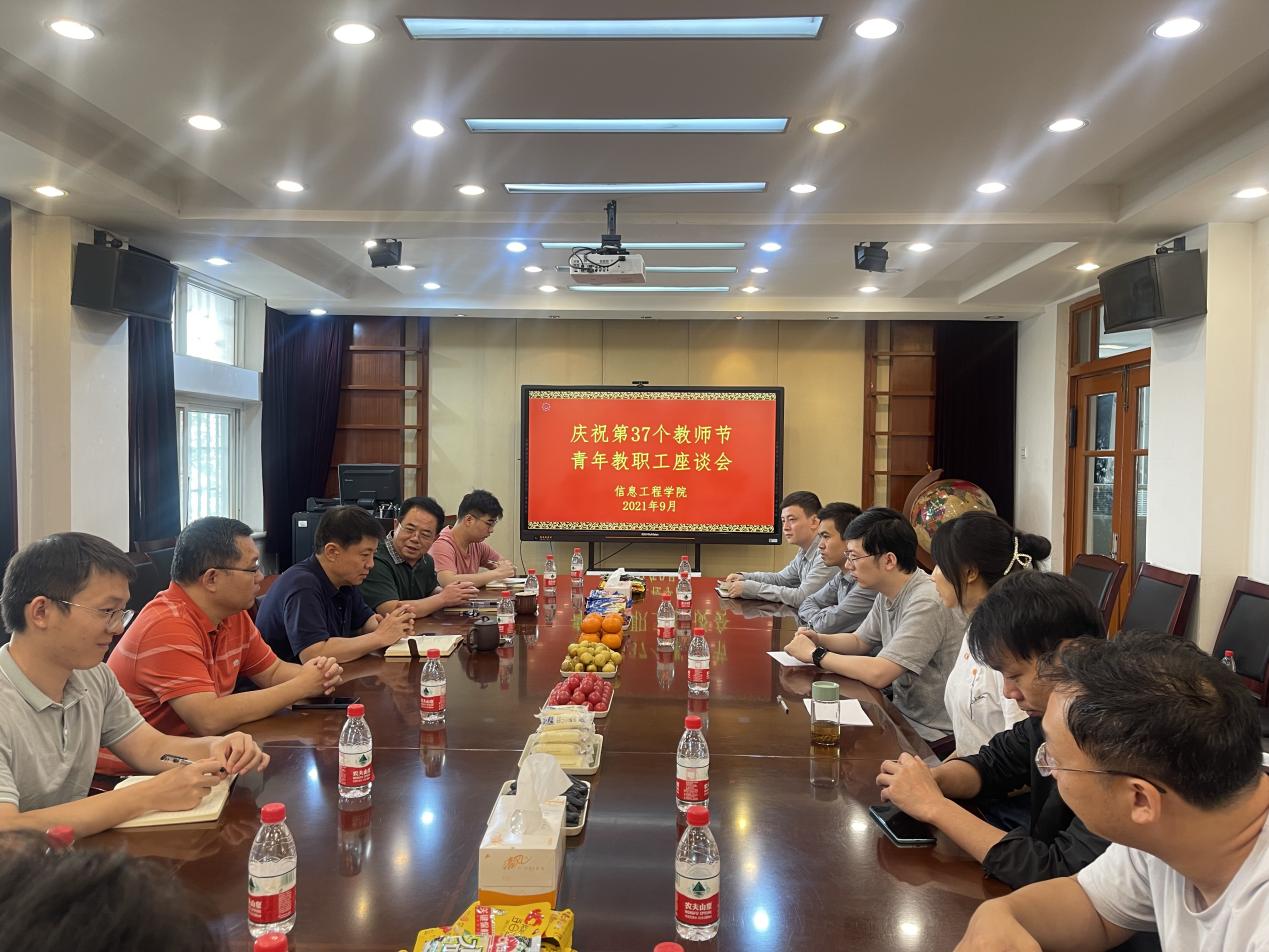 9月7日上午,信息工程學院在學院會議室召開慶祝第37個教師節(jié)青年教師座談會。學院黨委書記胡予欣,院長安毅生,院黨委副書記、紀委書記、副院長楊玉龍,副院長徐志剛出席會議。學院近四年入職的青年教師參加座談會。會議由楊玉龍主持。