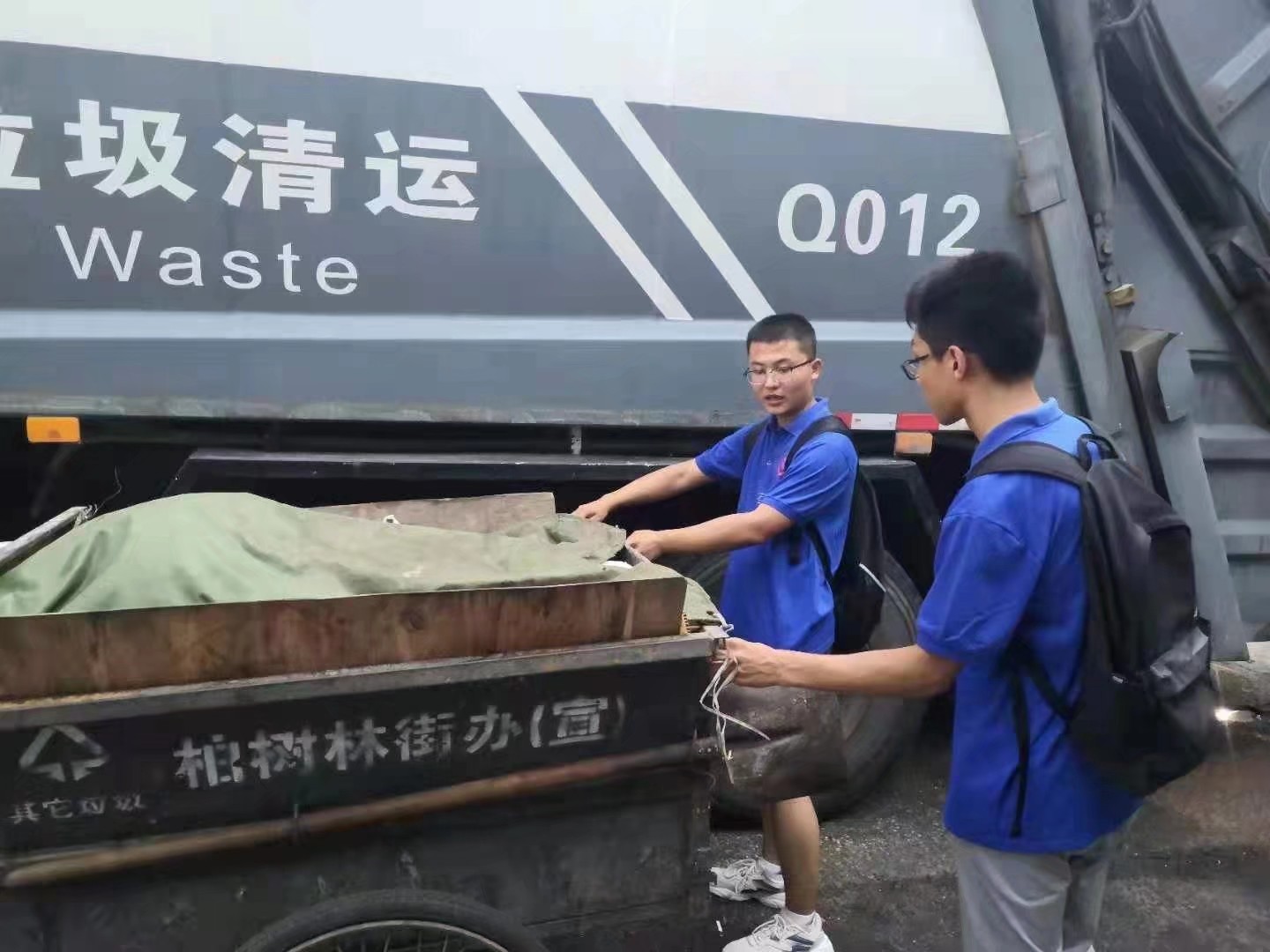 實(shí)踐隊(duì)對(duì)垃圾轉(zhuǎn)運(yùn)車(chē)進(jìn)行測(cè)量工作