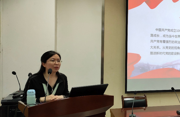 沈秀芳副教授作題為《從黨史中汲取前進(jìn)的智慧和力量》的主題報告。她從“黨史發(fā)展脈絡(luò)”、“黨的歷史貢獻(xiàn)”以及“黨史的寶貴經(jīng)驗(yàn)”三個方面展開,以時間為軸、以重大歷史時間為綱,用真實(shí)的歷史事件、歷史人物、歷史會議,系統(tǒng)講述了中國共產(chǎn)黨成立100年來,從小到大、從弱到強(qiáng),攻堅(jiān)克難,一路成長為當(dāng)今世界第一大黨的奮斗歷程,使大家對黨的百年奮斗歷史和開展黨史學(xué)習(xí)教育的重大意義有了更為全面深刻的認(rèn)識。