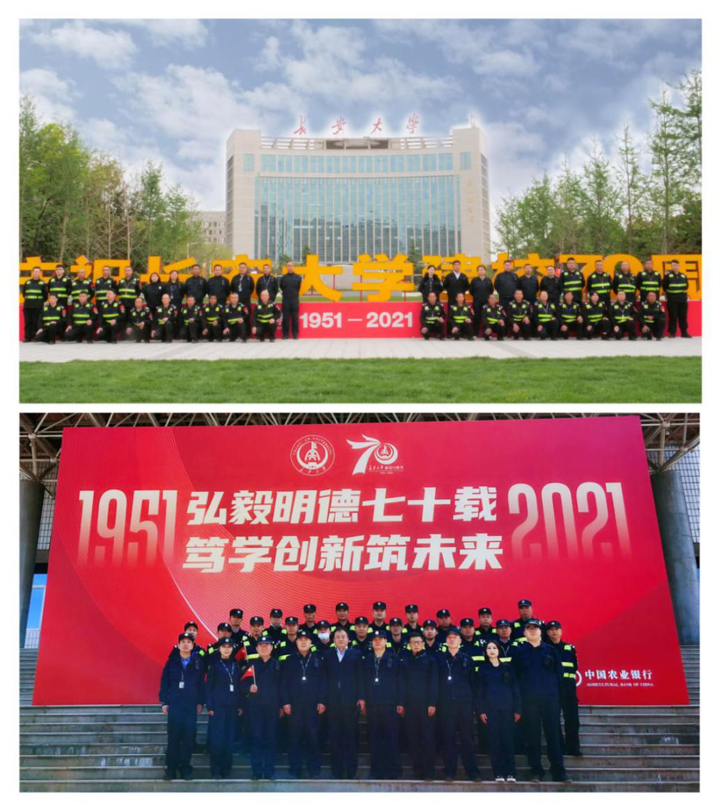 從前期工作籌備,到校慶中門崗值守、交通指揮、活動安保,保衛處全體人員盡職盡責、相互協作,凝心聚力、恪盡職守,筑牢安防堡壘,充分展現長大保衛隊伍精神風貌,圓滿完成了此次長安大學70周年校慶校園安全保衛任務!