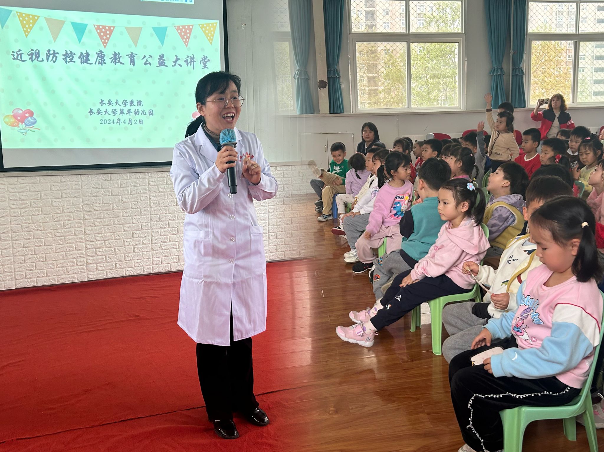 校醫院副主任醫師姚國敏作《有效減少近視發生 共同守護光明未來》專題講座,她結合幼兒的年齡特點,通過猜謎語、講故事、互動等有趣方式,為幼兒園小朋友們開展了預防近視的健康講座,強調保護眼睛的重要性,倡議孩子們牢固樹立愛眼、護眼意識。