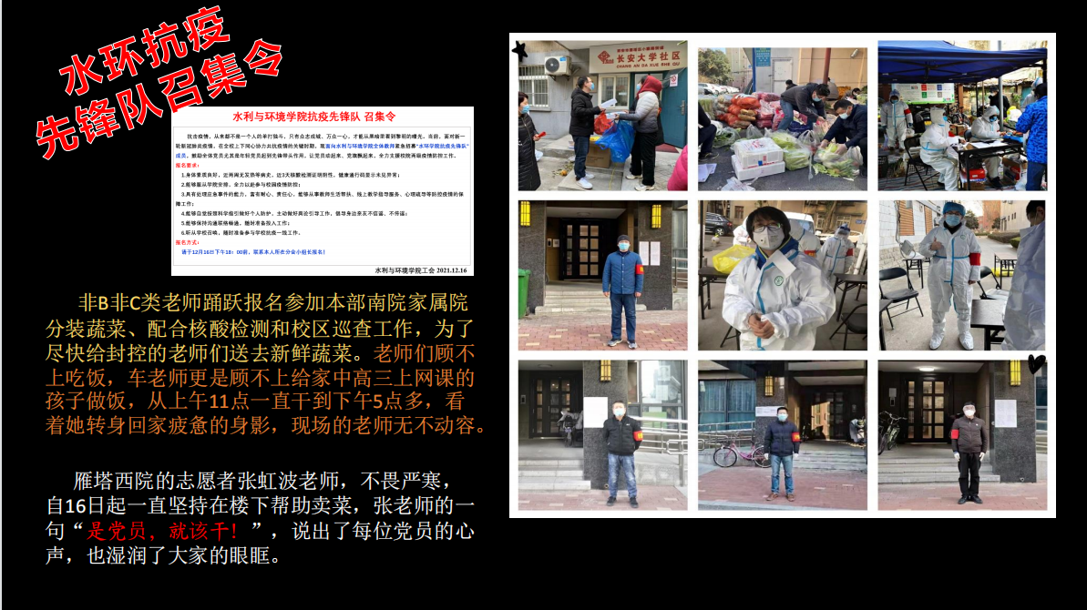 突如其來的疫情打破了校園的寧靜。為有效防控疫情,目前所有線下活動(dòng)全部暫停,所有課程均轉(zhuǎn)為線上教學(xué)模式,宿舍成了我們每日唯一的陣地。思政班主任高倩首先表示了對(duì)本次疫情中積極參與志愿活動(dòng)同學(xué)們的高度贊揚(yáng),并希望同學(xué)們疫情期間做好防護(hù),好好利用在宿舍的時(shí)光。此外,還向我們展示了水環(huán)學(xué)院老師們的志愿風(fēng)采以及黨員的抗擊疫情的必勝信念。