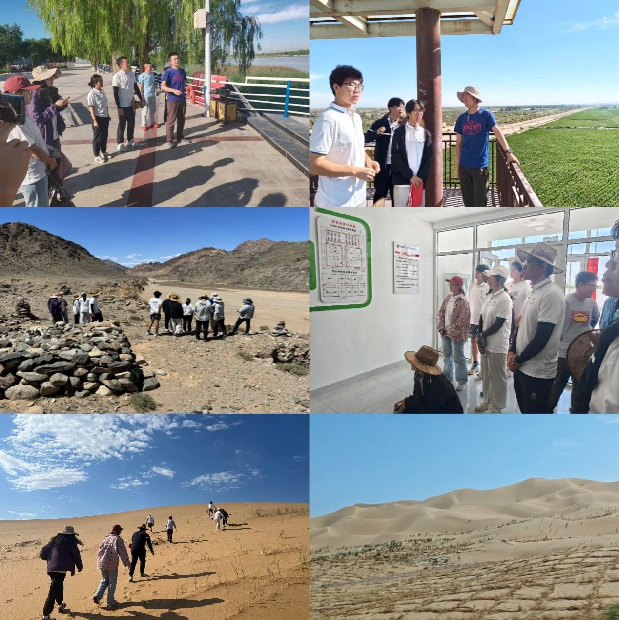 參觀走訪,觀生態修復之效。實踐團隊先后參觀了三盛公水利樞紐、奈倫湖、納林套海、雞鹿塞以及光伏治沙項目,切實感受到了“山水林田湖草沙”作為生命共同體的整體性和重要性,深刻體會了“不畏艱難、負重前行、團結拼搏、敢于勝利、繼往開來、永不止步”的308精神與治沙技術的實際應用和成效。