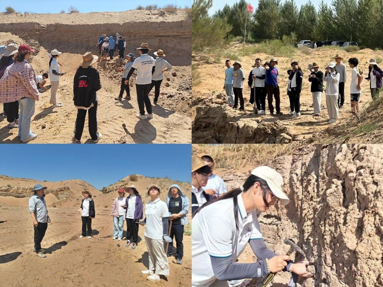實地勘察,解生態變化之妙。在中國地質調查局呼和浩特自然資源綜合調查中心相關負責人帶領下,實踐團隊參觀了古湖泊剖面工程與野外地下剖面,項目組負責人邊鵬結合生態學與第四紀地質學向實踐隊員解釋了不同土質沉積出現明顯分層的原因、詳細描述河流湖泊與沙漠的演變過程。實踐團隊成員也通過采集不同土質樣本并從不同的土質層間勘采貝殼,親身感悟湖泊變沙漠的歷史厚重感。