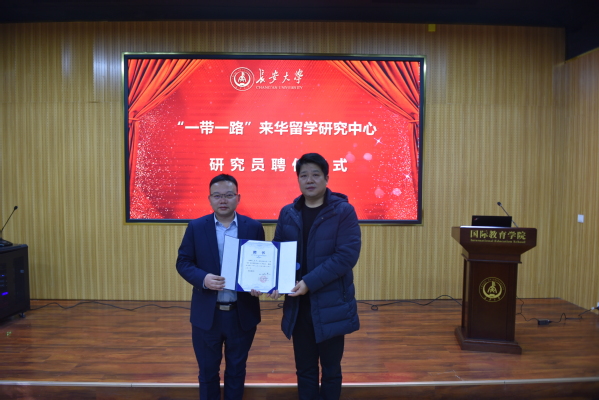 會上,張偉對孫軍的到來表示熱烈歡迎,他高度贊揚了中鐵二十局集團有限公司在海外基礎建設領域的發(fā)展成就。張偉指出,長安大學搶抓國家“一帶一路”和教育對外開放戰(zhàn)略機遇,創(chuàng)新國際教育發(fā)展模式與路徑,在培養(yǎng)基礎建設領域國際人才及校企合作方面積累了豐富的經驗。他希望立足中鐵二十局集團有限公司海外布局規(guī)劃和對國際人才需求,深挖合作潛力,深化校企合作,合力拉緊雙方在海外市場、人才培養(yǎng)、資源拓展、智庫建設等方面攜手發(fā)展的共同紐帶。同時,張偉在會上為孫軍頒發(fā)了“長安大學‘一帶一路’來華留學研究中心研究員”聘書。