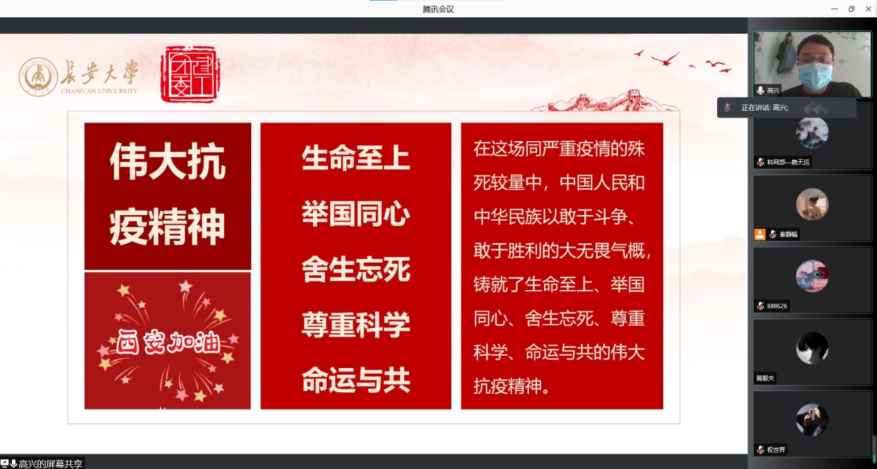 高興帶領同學們重溫習近平總書記在全國抗擊新冠肺炎疫情表彰大會上發表的重要講話。他號召同學們從生命至上、舉國同心、舍生忘死、尊重科學、命運與共的偉大抗疫精神中汲取戰勝疫情的強大精神力量。
