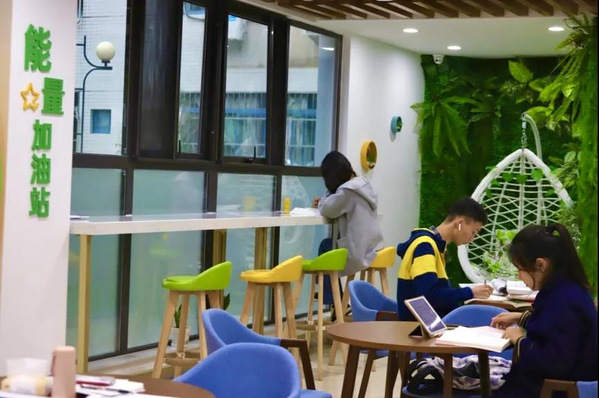 大廳位于朝暉園學生公寓9號樓與10號樓之間,建筑面積約2500m2。嶄新的課桌椅、精致的文化墻、漂亮的花卉盆栽營造了開放自由、智慧時尚、銳意進取、情兼趣雅的學習生活氛圍,助力實現“一墻一物會說話,一草一木皆育人”的社區文化浸潤功能。辦事大廳、多功能自習室、黨員活動室、團體活動室、交流研討室、學生社區“悅讀空間”等空間的開放,拓展了學生公共服務空間、提升了文化氛圍、激發了校園活力。未來,學業輔導室、生涯規劃指導室、學生社區心理輔導站、秦疆情少數民族學生工作室、學生自助服務區、咖啡廳等場地的投入使用更將讓這里成為集生活、學習、交友、學術交流、文化育人功能于一體的教育生活園地,促進學校實現服務、文化、環境等全方位一流目標,全力推進三全育人,落實十大育人體系。
