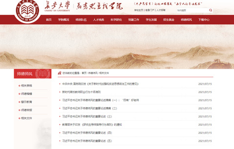 學院以師德建設為指引,統籌推進“師德-教學-學科”一體化建設。首先,在師德師風建設方面,形成了以陜西省2020年師德標兵稱號獲得者劉吉發教授、被《人民日報》專題報道的“銀鈴教師”曾樂元教授為典型的示范團隊,率先垂范、以身作則,以自己的模范行為影響和帶動學生。同時,學院也獲得2020年長安大學師德建設示范團隊稱號。其次,在人才培養和學科建設上,我院通過組織思政課教師“大練兵”展示活動、開展集體備課會等形式,持續提升教師教學水平,全方面提高思政課教師素質,打造一支“課堂有紀律、課程有內涵、學術有規范”的思政課教師隊伍。近些年,我院多名教師獲得全國首屆思想政治理論課教學展示活動特等獎、陜西高校思政課教師“大練兵”教學標兵稱號、教學能手稱號。