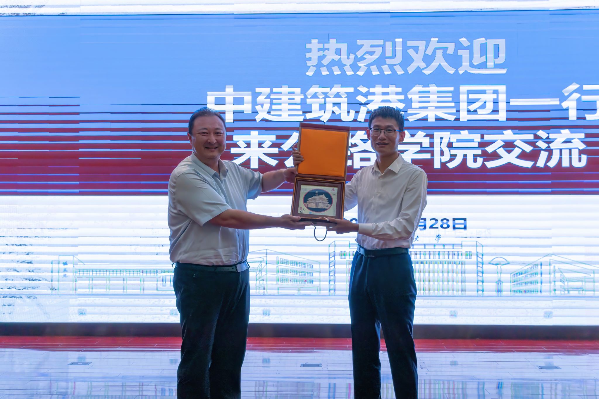 劉徐代表學(xué)院對(duì)中建筑港集團(tuán)一行來(lái)訪交流表示熱烈歡迎,并贈(zèng)送紀(jì)念品。