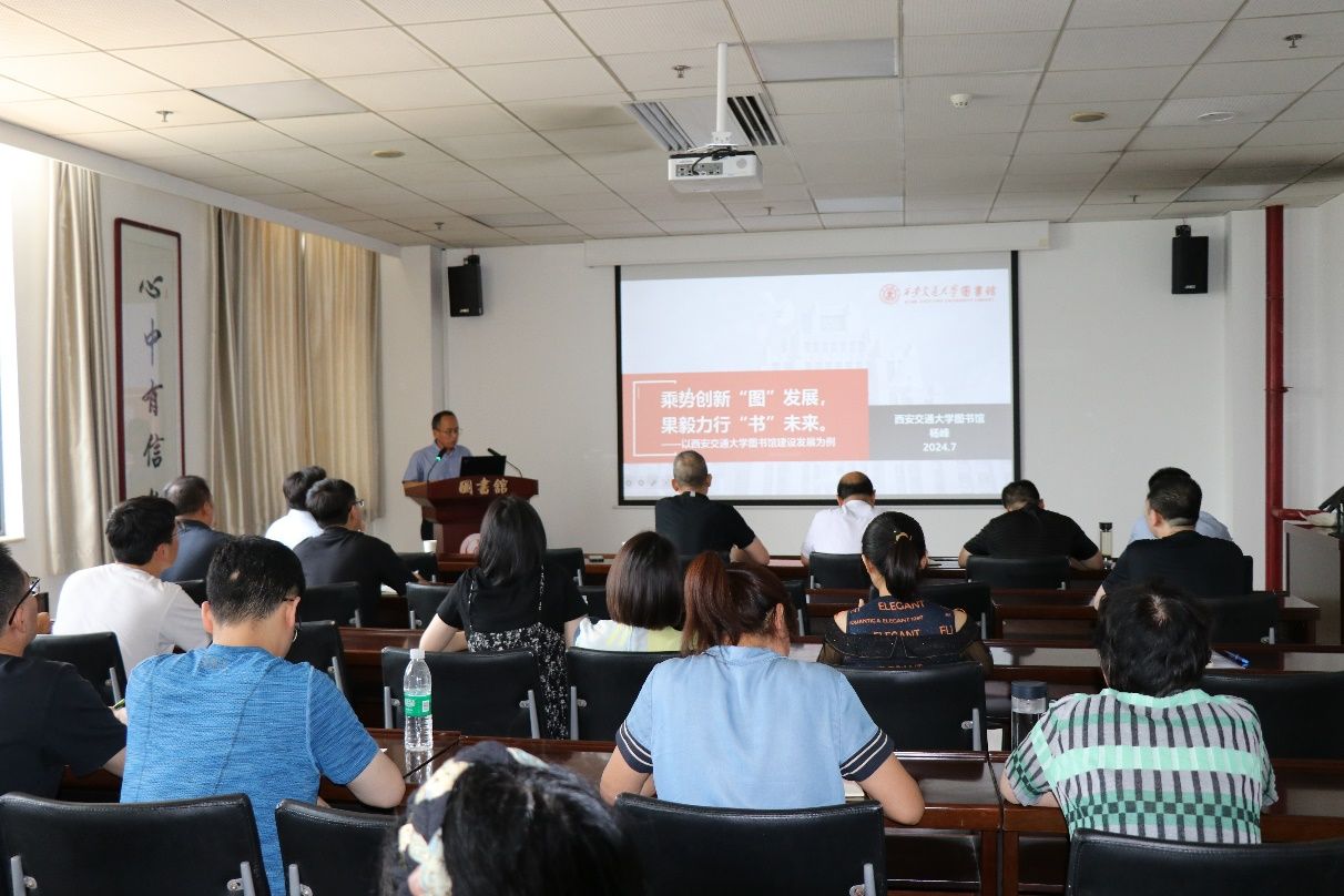 為推動圖書館智慧化建設(shè),提升館員業(yè)務(wù)水平,7月2日下午,圖書館邀請陜西省圖書館學(xué)會副理事長、交大圖書館副館長楊峰作“智慧圖書館建設(shè)”專題報告。報告由圖書館館長樊建強主持。