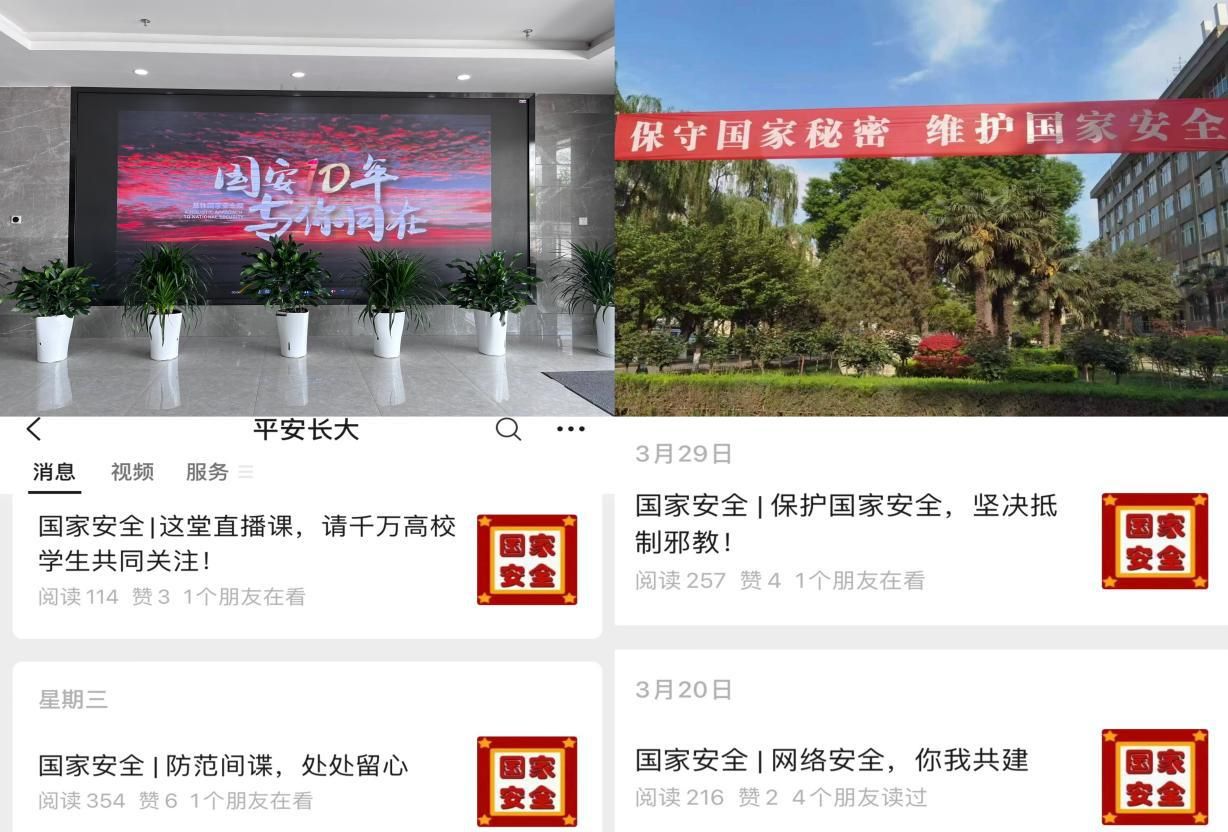 自宣教活動啟動以來,學校通過線上線下相結合的方式在校內開展國家安全宣傳教育,在校園主干道懸掛國家安全宣傳橫幅;利用校園LED電子屏播放4·15國家安全教育日宣傳視頻,滾動播放國家安全相關知識點;充分利用官網、官微及二級單位微信公眾號,全方位、多角度科普宣傳國家安全教育相關內容,做好“4·15”系列宣傳教育推送。