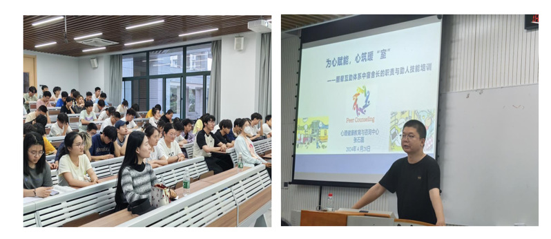 為切實(shí)提升我校朋輩互助團(tuán)隊(duì)心理危機(jī)干預(yù)處置能力,深入推進(jìn)“一站式”學(xué)生社區(qū)與心理育人有效融合,4月28日晚,學(xué)校舉辦宿舍長朋輩互助技能培訓(xùn)會(huì),心理健康教育與咨詢中心副主任張石磊作題為“為心賦能,心筑暖室”主題培訓(xùn),部分學(xué)院宿舍長、心理委員共150余人參加培訓(xùn)。