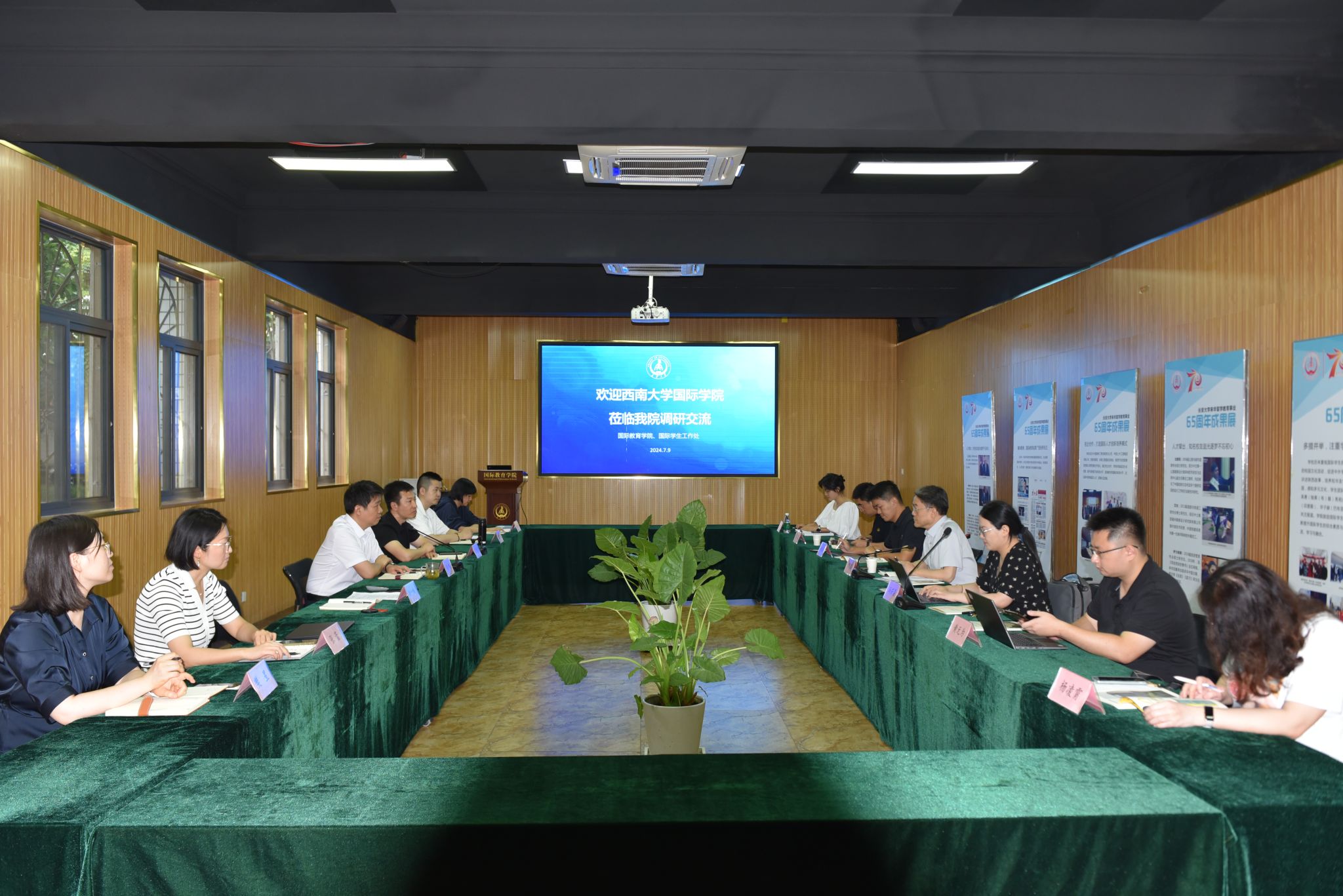 7月9日,西南大學國際學院黨委書記劉猛一行7人到我校國際教育學院調研交流。國際教育學院院長張偉、副院長呂衛東及學院相關科室負責人參加了座談會。