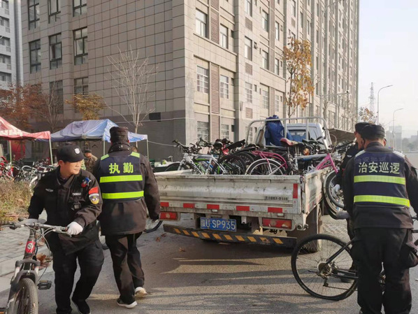 保衛(wèi)處對校園教學(xué)樓、宿舍樓、食堂門口等處的廢棄自行車進(jìn)行清理,共計清理廢棄自行車1100余輛,校學(xué)生會的同學(xué)們?nèi)瘫O(jiān)督清理。清理的自行車被移至專門場地集中停放,逐一清理,專人看守,等候師生的認(rèn)領(lǐng)。此次清理了大量長期未騎行的廢棄自行車,緩解停車難問題,規(guī)范停車秩序,解決安全隱患,美化校園環(huán)境,對文明校園建設(shè)起到了推動作用。