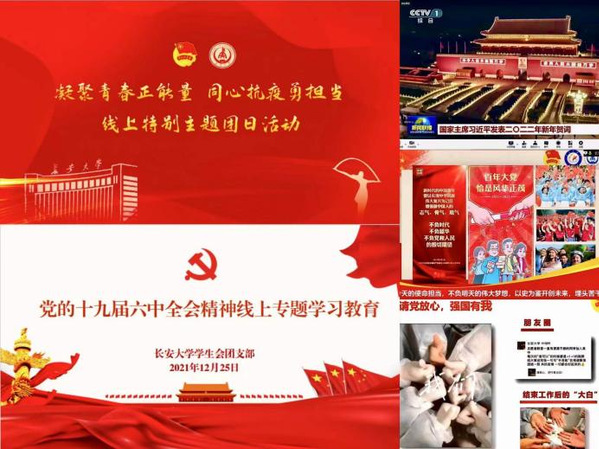 凝聚青春之識,在思想引領中做先鋒。學生會聽從指揮戰疫情,爭當表率筑防線。疫情發生后,第一時間和研究生會共同發出《致長安大學全體同學的倡議書》,號召廣大同學統一思想認識,增強行動自覺。校院兩級學生會團支部開展“凝聚青春正能量·同心抗疫勇擔當”線上主題團日和紅色觀影等文體活動百余次,深入學習黨的十九屆六中全會精神,熱議國家主席習近平發表的二〇二二年新年賀詞,從百年黨史中感悟初心使命,汲取奮進力量;通過尋訪抗疫志愿服務榜樣,聆聽青春抗疫故事,引導同學在疫情防控中厚植家國情懷,強化責任擔當。發布“青春抗疫展風采·共克時艱有擔當”等抗疫主題推文400余篇,推文多次被共青團中央、陜西學聯官微轉載采用。