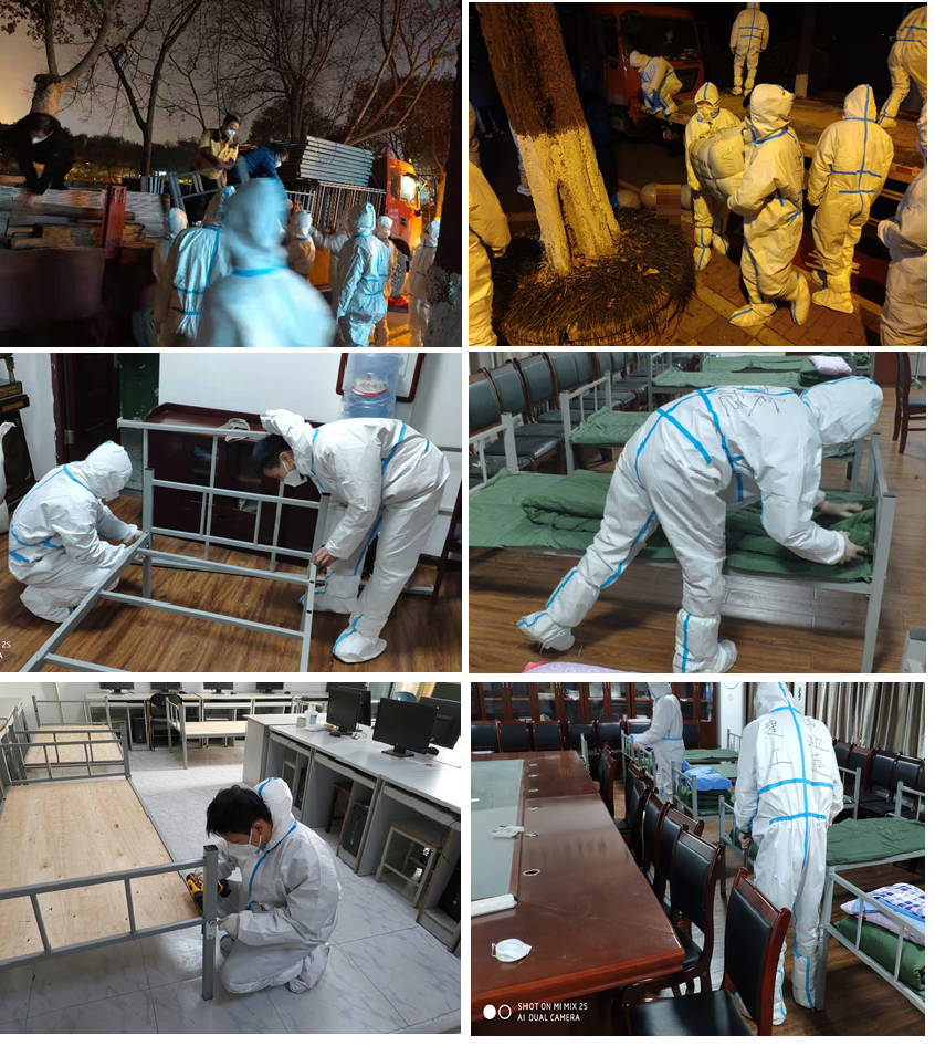 建工速度——100余張床鋪緊急組裝完畢。為保障集中隔離期滿返校留觀學生的住宿條件,2022年1月2日晚7點,建筑工程學院組建志愿服務突擊隊,在4個小時時間內緊急完成100余張簡易床的卸貨、搬運、組裝任務,并將臨時借住的會議室、教室等場所清掃干凈,添置生活必需品,盡可能地為返校集中留觀同學創造一個溫馨、舒適、溫暖的“家”。