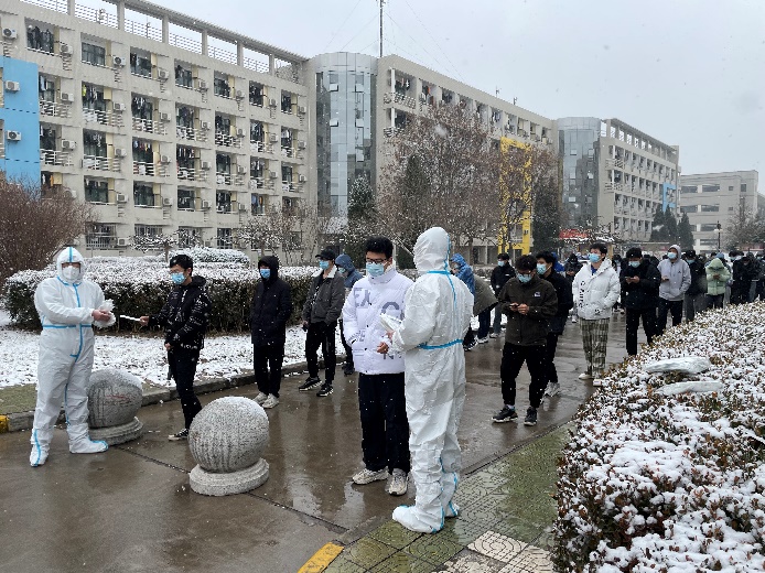 李曉光副院長爭做戰疫“急先鋒”,努力當好寒冬“點燈人”,充分發揮黨員領導干部的示范帶頭作用,在崇業路住宅區擔任組長,積極投入一線工作;李培老師和梁坤老師平日里不善言辭,但卻在疫情初期、人手急缺的時候第一時間報名志愿者工作,在南校區運送物資、協助核酸檢測,經常一天下來汗水已經將衣服浸透;劉強老師發現有研究生發熱,立即聯系排查,忙碌到晚上十一點仍放心不下;李曉玲、張華、袁春博、黃小樂、江超、劉靜、苗曉瑜幾位老師在渭水校區不僅要完成年終繁重的本職工作,還要為學生送餐、協助核酸檢測、參加研究生入學監考和北校區應急醫療保障等工作;趙傳靚、晁立政、付宏濤、張勇、趙凡幾位老師第一時間響應上級要求,主動報名志愿者,在翠華路住宅區、小寨校區、崇業路住宅區巡邏、核酸檢測、維護秩序、運送物資,默默奉獻,毫無怨言;王永輝、靳梁巍、白濤、李宏偉、王立勛、李明軒、寇大為幾位輔導員白天要深入一線完成線下志愿者工作,晚上回到宿舍還有大量學生流調信息填報、密接排查、心理安撫等線上工作等待著他們去填報,一天下來,不知道什么時間才能吃上一口已經涼了的飯菜。即便如此,他們依然心系師生,言辭中傳遞著樂觀、豁達的正能量。