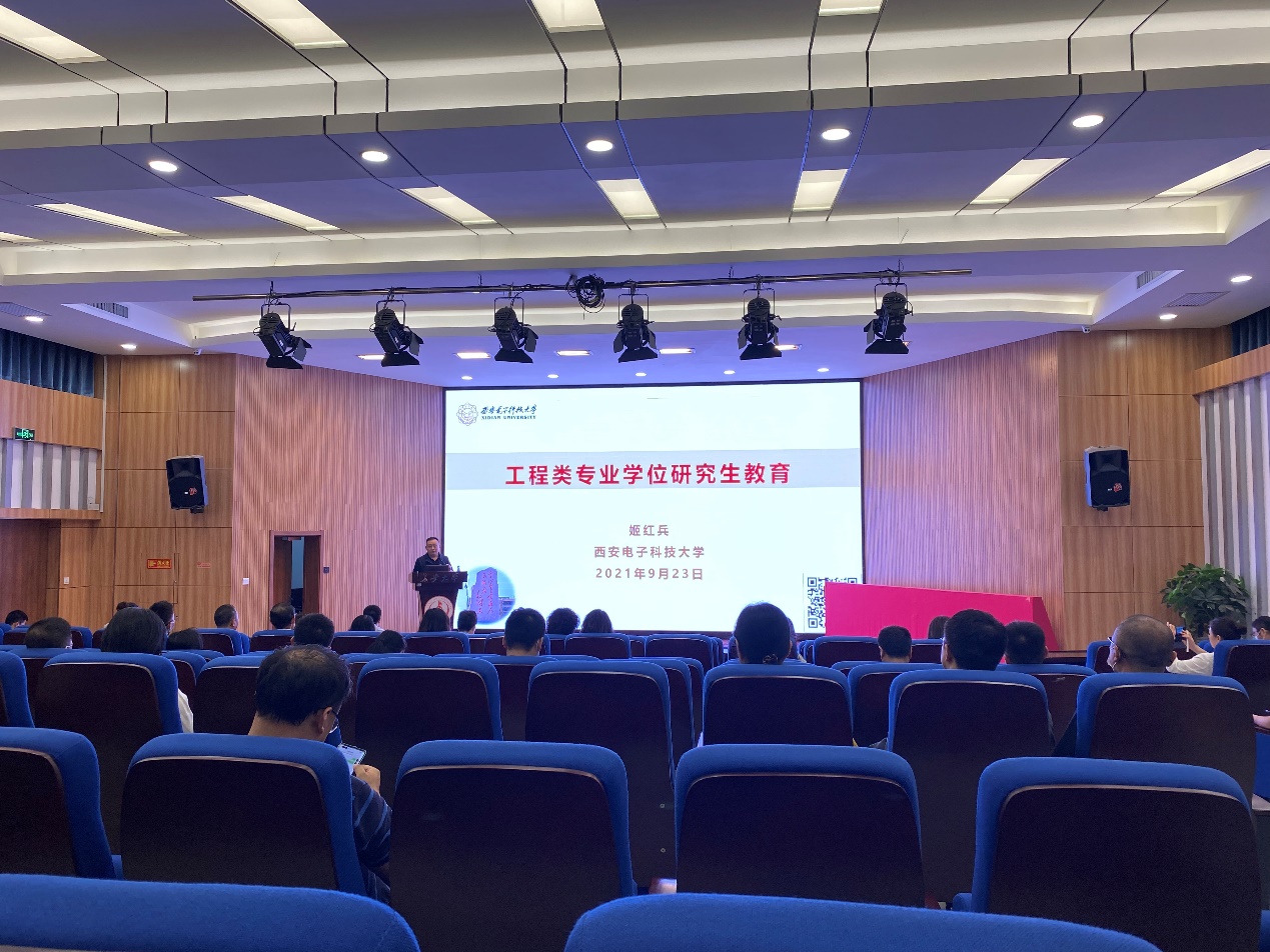 9月23日下午,研究生院/研究生工作部在南校區東院伯聲報告廳舉辦專業學位研究生培養系列報告第一講。第五屆全國工程專業學位研究生教育指導委員會委員、西安電子科技大學博士生導師姬紅兵教授應邀作《工程類專業學位研究生教育》專題報告。報告會由研究生工作部部長高天智主持。