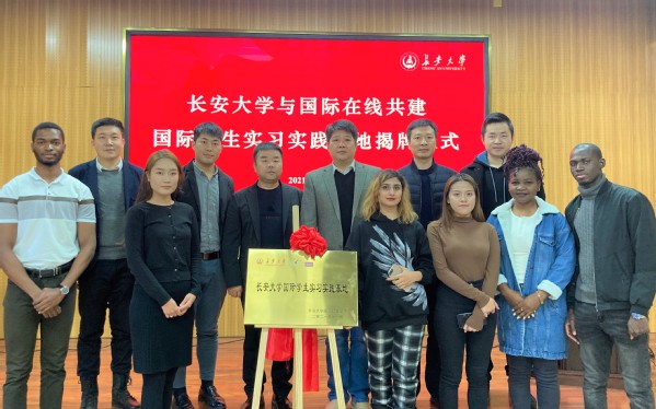 11月30日下午,長安大學與國際在線共建國際學生實習實踐基地揭牌儀式在國際教育學院多功能廳舉行,國際在線陜西頻道總編輯史佳、綜合新聞中心副主任趙浚喆、國際教育學院院長張偉出席揭牌儀式,儀式由國際教育學院副院長呂衛東主持。