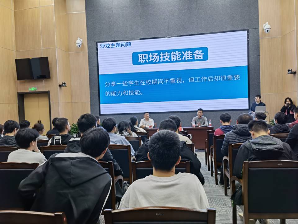兩位嘉賓分別從求職思路、職業(yè)規(guī)劃、職業(yè)能力提升、就業(yè)與考研抉擇、職場人際交往等方面與同學(xué)們分享了自己的經(jīng)歷和經(jīng)驗(yàn),現(xiàn)場解答了同學(xué)們在求職過程中遇到的難點(diǎn)和困惑。同學(xué)們積極參與,氣氛熱烈。