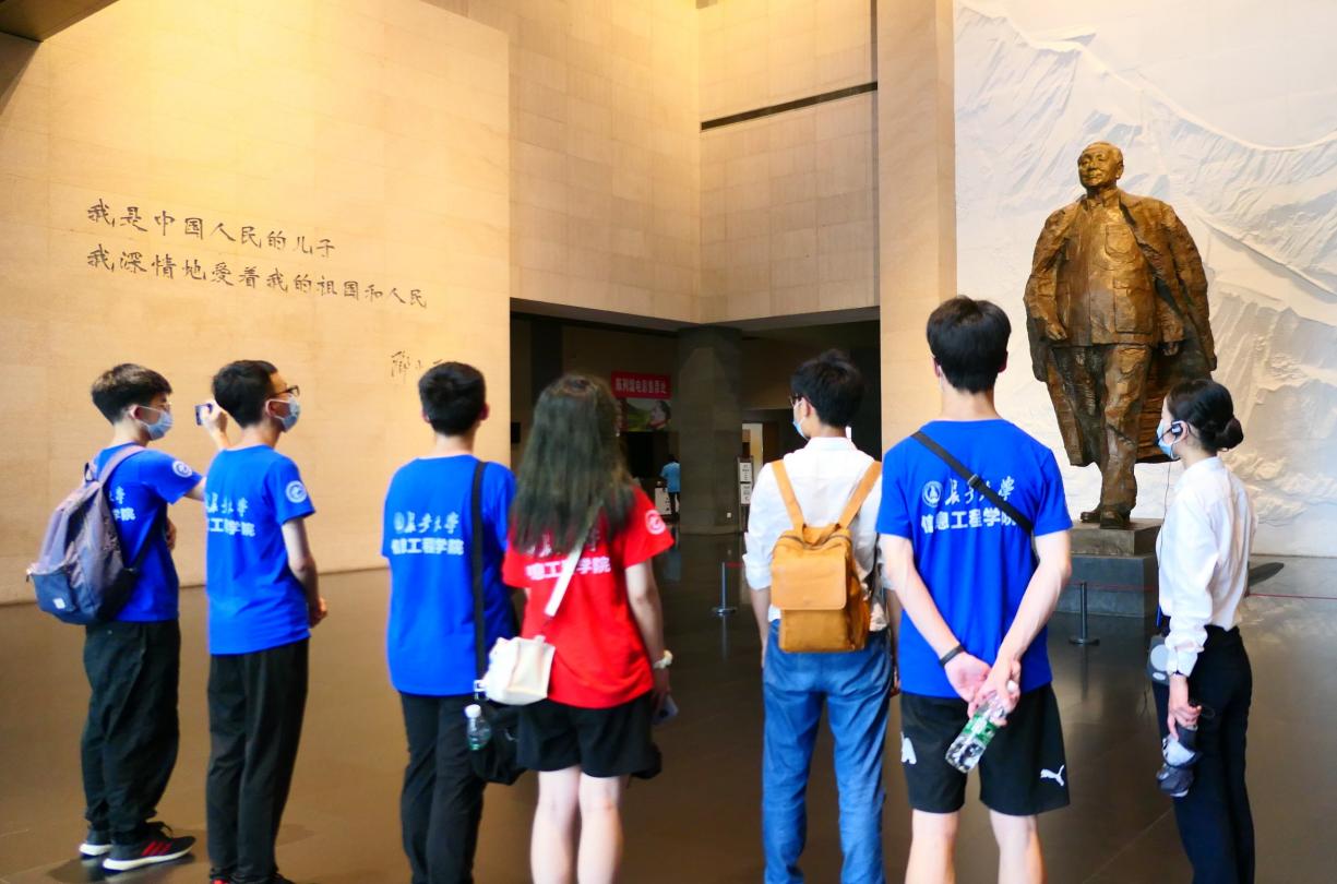 7月15日,實踐隊前往廣安市鄧小平故居,追憶建黨百年的崢嶸歲月,研學偉人事跡,重拾偉人歷史。實踐隊師生面對鄧小平銅像,肅立鞠躬,對中國改革開放總設計師表示崇高敬意和緬懷之情。隨后,隊伍依次參觀陳列館、緬懷館、鄧小平故居,回顧鄧小平同志在中國革命、現代化建設和改革開放三大歷程中建立的豐功偉績,重點學習他“三落三起”的傳奇一生。