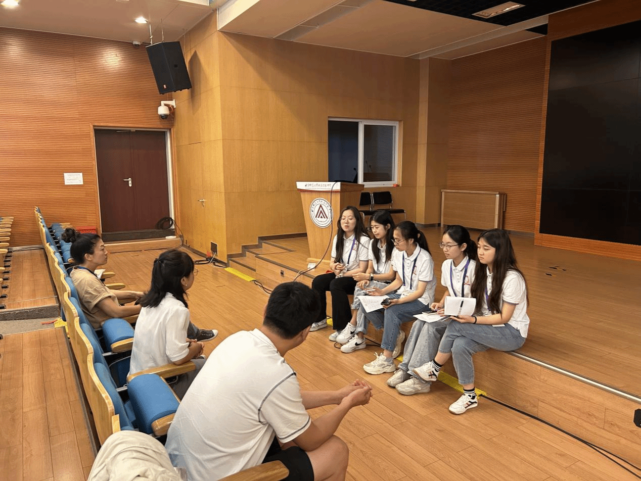 實習體驗,助力文化交流。實踐隊隊員前往北京師范大學附屬實驗中學藝術團暑期英國夏令營行前會議現場,團隊成員們作為實習志愿者參與其中。體驗組織中外交流夏令營繁瑣細致的工作,了解專業的實際工作內容,如前期策劃、宣傳推廣、簽證辦理、活動設計等,理解國際交流中的跨文化交際,并與行業人員進行訪談交流,拓寬了對于專業就業的視野,也探索了跨文化交際、英語專業就業情況的新視角。