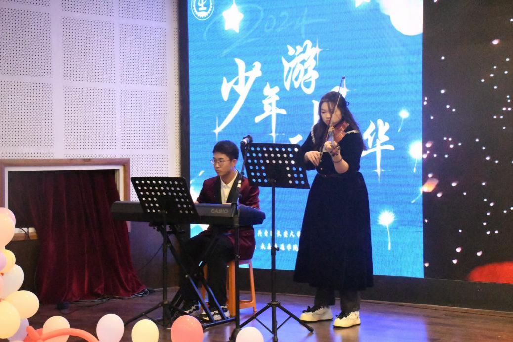 晚會在充滿青春活力的節(jié)目《像你這樣的朋友》中拉開序幕;《若是月亮還沒來》的歌聲如同夜空中最亮的星辰,照亮了每一個聽眾的心房;《如愿》在鋼琴和小提琴的悠揚合奏中緩緩展開;《鼓樓》《是你》《找自己》歌曲聯(lián)唱精彩紛呈;Sally face樂隊帶來《愛的飛行日記》和《24 Hr Drive-Theu》,歌曲充滿活力和激情。在晚會的后半程,兼職輔導員戴汐涓和2024級本科生徐子婷共同帶來的歌舞節(jié)目《生活倒影》深深打動了在場觀眾;新生輔導員劉志興領誦的《一起向未來》表達了對未來的無限憧憬和堅定信念,熱情洋溢的歌聲和充滿活力的舞步展現(xiàn)了青春的朝氣和對未來的無限期待。