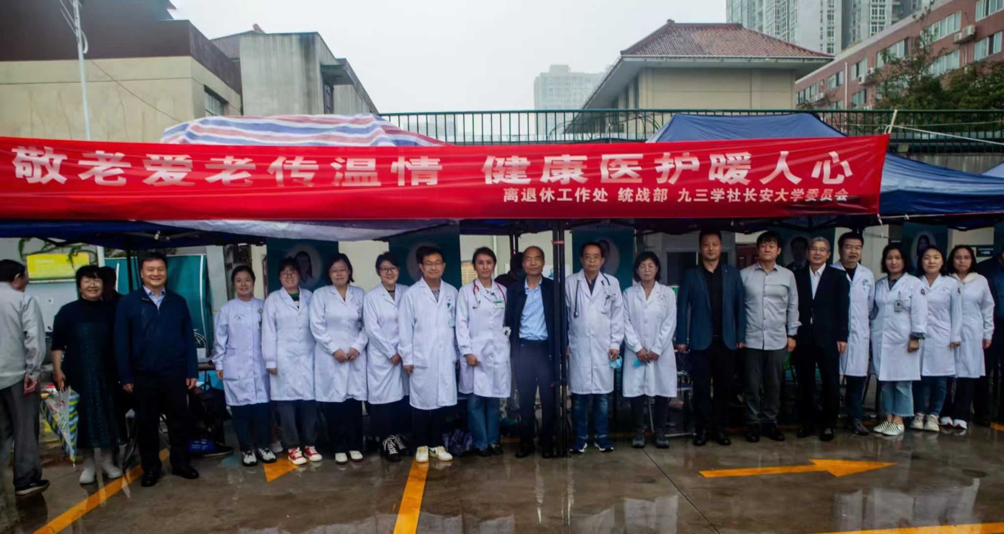10月17日,統戰部、離退休工作處與九三學社長安大學委員會聯合在崇業路住宅區舉辦“敬老愛老傳溫情健康醫護暖人心”健康咨詢活動。九三學社陜西省委秘書長李勝利、組織部部長劉濤、社會服務部部長丁鵬飛、參政議政部部長謝良才,九三學社陜西省委常委、九三學社陜西省醫藥委員會主任、省人民醫院心內科主任姜馨,九三學社陜西省委常委、九三學社長安大學委員會主委、校檔案館、博物館館長李加武,離退休工作處處長薛慶文,統戰部副處級統戰員劉小莉,以及十余位醫學專家等參加活動。