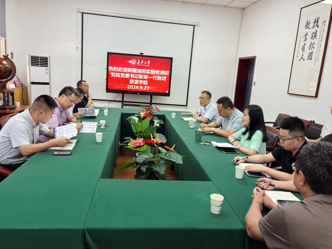 9月27日上午9點,中石油新疆油田實驗檢測研究院黨委書記靳軍一行到訪資源學院,資源學院黨委副書記許晨、副院長程宏飛、副院長楊秀清及部分教師代表,2025屆石油專業博碩士畢業生參加座談,座談會由資源學院黨委副書記、副院長劉會濤主持。