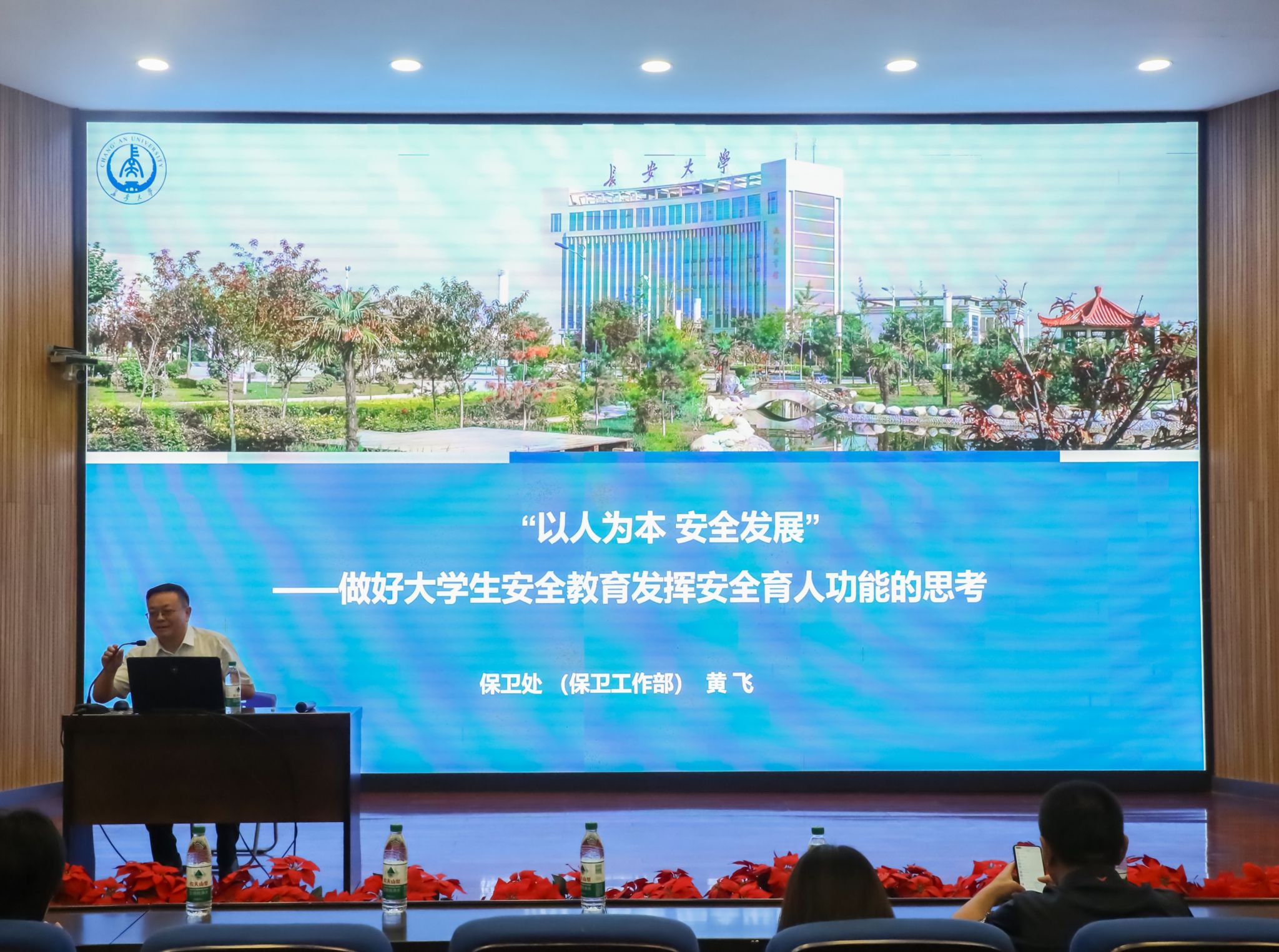 9月13日下午,為提高研究生新生的安全意識(shí)和自我保護(hù)能力,研究生工作部聯(lián)合保衛(wèi)處在南校區(qū)東院伯聲報(bào)告廳舉辦了題為“以人為本 安全發(fā)展——做好大學(xué)生安全教育發(fā)揮安全育人功能的思考”研究生新生安全第一課主題講座,保衛(wèi)處處長黃飛主講,各學(xué)院150余名研究生參加。