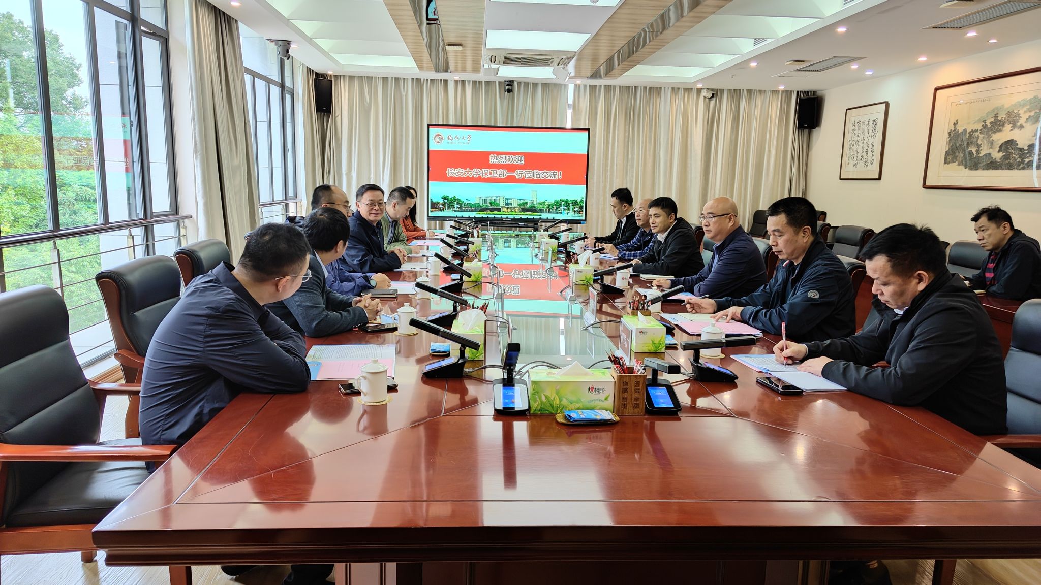 12月4日上午,保衛(wèi)處處長(保衛(wèi)工作部部長)黃飛帶隊赴福州大學(xué)調(diào)研交流校園安全管理工作經(jīng)驗。福州大學(xué)保衛(wèi)部部長許春華攜相關(guān)業(yè)務(wù)科室負(fù)責(zé)人參加交流。