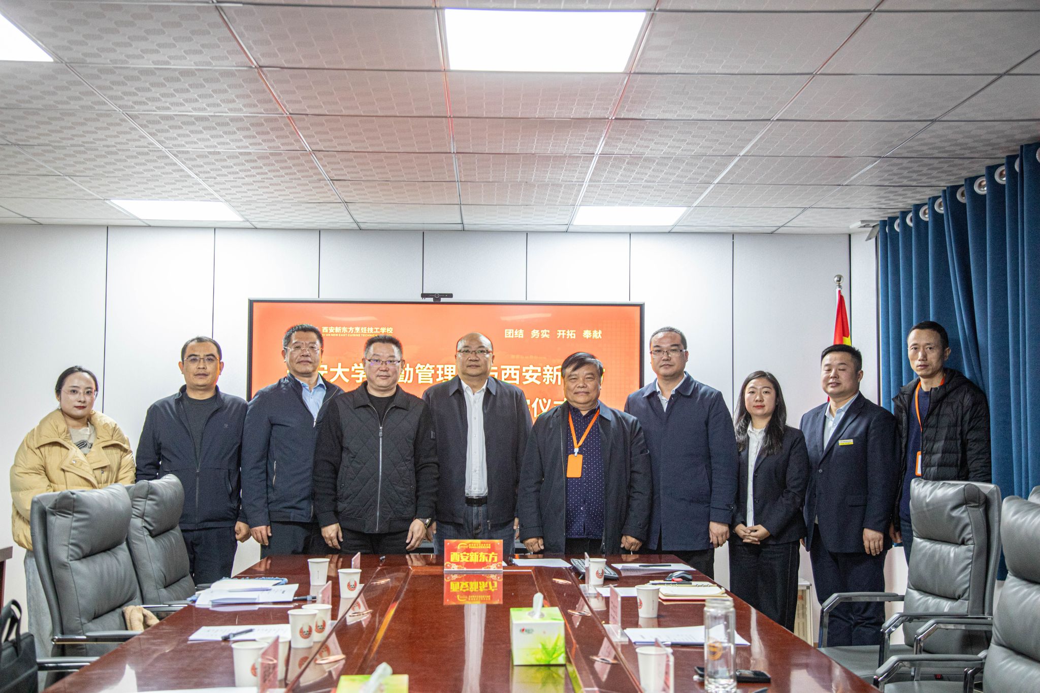 新東方烹飪技工學校是經陜西省人力資源與社會保障廳批準的專業烹飪學校、國家第三方職業技能等級認定機構。后勤管理處副處長暢琰,新東方陜西區域后勤事業部總經理朱玉林,新東方烹飪技工學校副校長王安平,后勤管理處飲食中心負責人,新東方烹飪技工學校教務、財務負責人等參加戰略合作協議簽訂儀式。