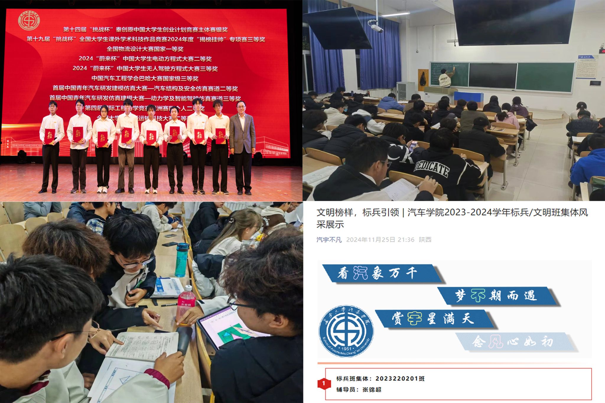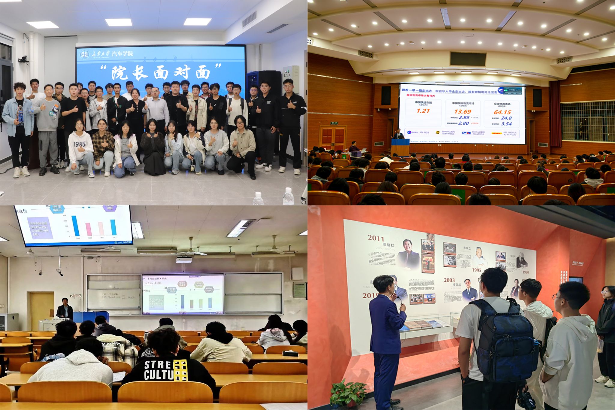 深化專業(yè)導航,激發(fā)奮進力量。針對本科新生入學后普遍存在的學業(yè)不適、專業(yè)認知迷茫等問題,學院在幫助新生建立初步專業(yè)認知、明確未來學習與發(fā)展的方向上持續(xù)發(fā)力,組織帶領新生前往長安大學校史館、交通館參觀學習,拓寬學生對汽車行業(yè)的了解;開展“院長面對面”及“汽車大講堂”等講座活動,搭建新生及行業(yè)專家之間浸潤式交流平臺,服務學生成長成才;組織開展“我和我的院系”主題班會6次,提升新生的專業(yè)認同及情感認同。