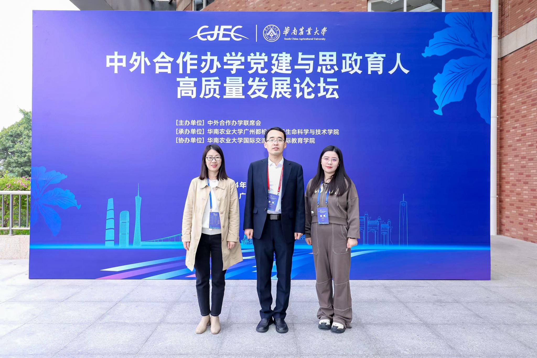 12月12日至14日,由中外合作辦學聯席會主辦、華南農業大學都柏林國際生命科學與技術學院承辦的中外合作辦學黨建與思政育人高質量發展論壇在廣州召開。會議圍繞中外合作辦學黨建與思政育人主題,探討了全球化背景下中外合作辦學黨建與思政育人的新思路和新舉措。長安都柏林國際交通學院黨總支書記趙亮帶隊參加論壇。